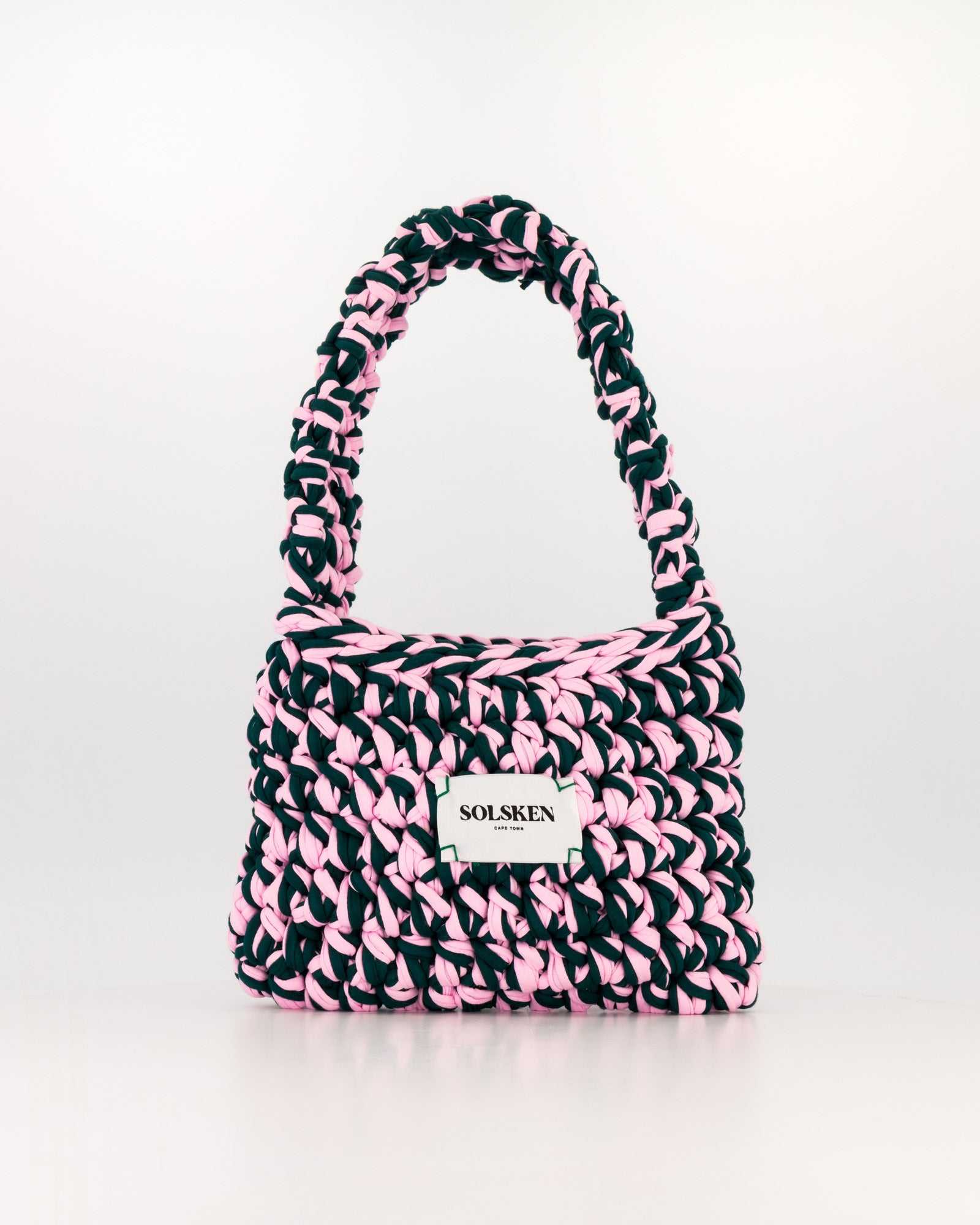 The Abba Bag is crocheted out of upcycled T-shirt yarn, handmade in Cape Town.
